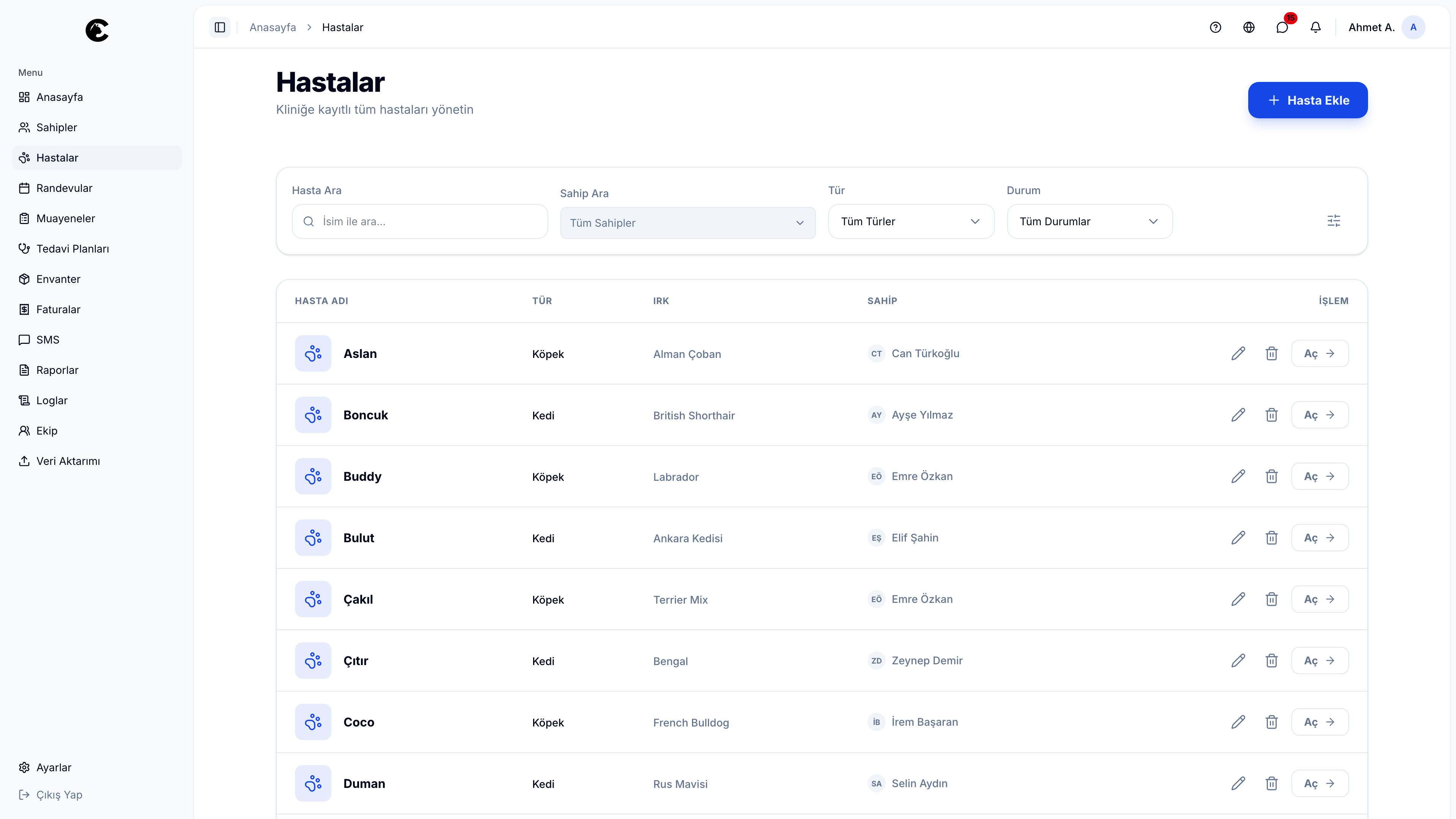 Veteriner Klinik Yönetim Sistemi